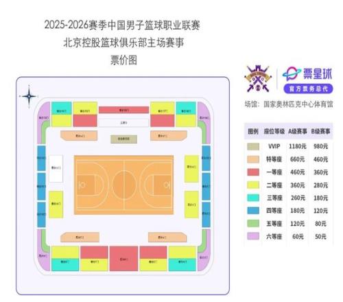 单场票价图 本场比赛为B级赛事 比赛地点:奥体中心体育馆