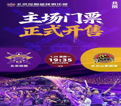 开!票!啦! 2025-2026赛季CBA常规赛 1月26日 北京控股vs长白山恩都里 门票将于1月19日中午12:18正式开售