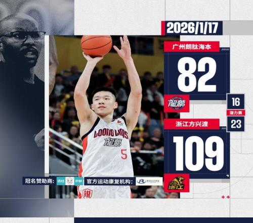 2025-26赛季CBA常规赛第十六轮 客场负于广厦 广州朗肽海本 82 : 109不敌浙江方兴渡