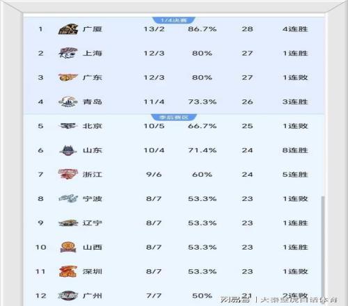 ③、赵继伟复出,助力辽宁82-75险胜新疆,止住连败颓势 自从全运会受伤之后,赵继伟一直高挂免战牌,新赛季前14场比赛全部缺席。 经过漫长等待,终于在本场复出,没想到一直远离赛场的赵继伟仍然是球队绝对核心,在首节0分的情况下,先是在次节拿到7分,接着在下半场送出3记3分,半场拿下17分,全场更是24分7次助攻,尤其在最后时刻连续命中3分,帮助辽宁艰难击退新疆。 随着几场比赛的结束,最新积分榜又变了: ①、广厦13胜2负一枝独秀高居榜首,上海和广东12胜3负分列二三; ②、青岛队11胜4负反超北京队的10胜5负,排名第4; ③、辽宁队止住连败颓势后,排名来到第9位。 具体排名如下!