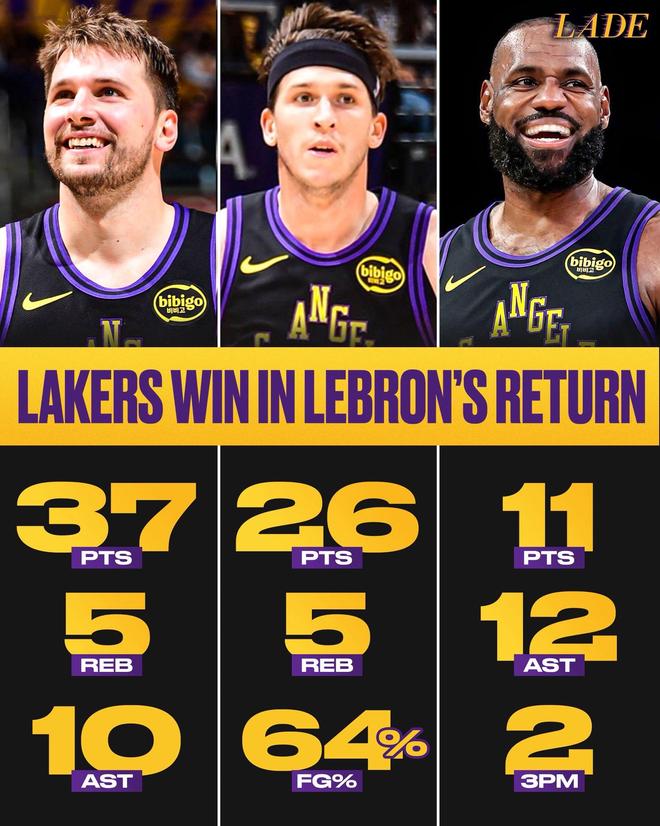 对于湖人球迷来说,这或许是本赛季最令人激动的时刻,主场迎战爵士,他们终于迎来了勒布朗·詹姆斯的复出,自此,完全体湖人正式登场,尽管上半场因为磨合等问题,让球队一度多次落后爵士两位数,但湖人的天赋还是高于爵士,最终在下半场完成逆转,以140比125大胜爵士,豪取三连胜,本场获胜后,湖人战绩来到11胜4负,排西部第四,据统计,这是湖人自2020-2021赛季以来他们取得的最佳开局,同时也是东契奇职业生涯中最好的15场开局。