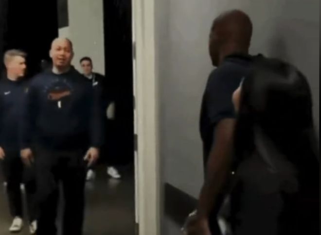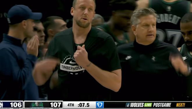 在今天森林狼与快船的最后7.5秒,森林狼只领先一分,而球队却选择在最后时刻,换上了没有登场的老将英格尔斯,让后者完成边线球任务。 随后下场后,两位助教还不停地与英格尔斯开玩笑。