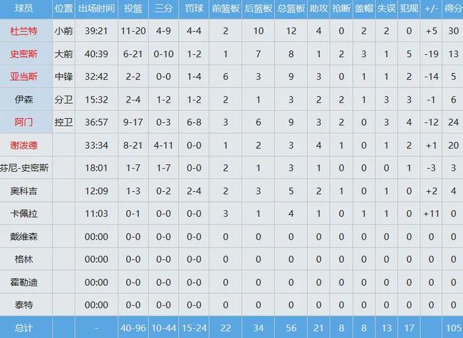 杨瀚森本场任务是继续硬刚消耗全联盟最强壮的男人“海王”亚当斯,多次被后者摔倒在地,打了13分钟只有2分1板1助进账,正负值为零。
