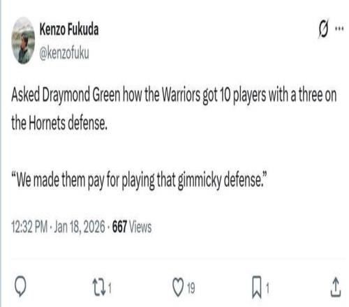 15战11胜找到赢球秘诀 而勇士队之所以多点开花,一方面是因为球员状态回暖,另外一方面也是因为黄蜂队堪称“奇葩”的防守策略。 正如赛后追梦被问如何看待勇士全场10人命中三分时所说:“他们基本将我们完全放空了,他们用5个人盯防库里,想要把他限制住,让我们其他人都能获得空位三分的机会,我们也投进了这些球,让他们为那种花哨的防守付出了代价。”