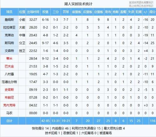 整场湖人攻防两端全面被年轻的开拓者压制,詹姆斯单核带队16中6得20分9篮板8助攻还吃到恶意犯规,倘若不是斯玛特、蒂米、克莱伯三名球员发挥不错,分差只会更大。从场面来看开拓者无论是内线,还是冲击力都拥有绝对优势,湖人大比分输球也算是情理之中!杨瀚森第四节最后时刻登场没有太多表现机会,0次出手没有数据进账! |