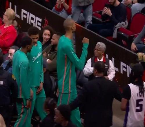 文班像个恶作剧成功的捣蛋孩子,离场时竟还握着拳“庆祝” 好了,好了,知道你有沙煲大的拳头,可以一拳打坏篮筐