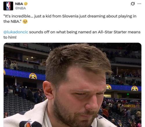 詹姆斯也在赛后送上祝福:“要向卢卡致敬,他是全明星票王,你能看到今晚他球衣上的徽章真的很酷,他当之无愧。”