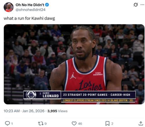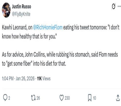 球迷将直播吃推文!伦纳德:我不知道那样是否对他的健康有利