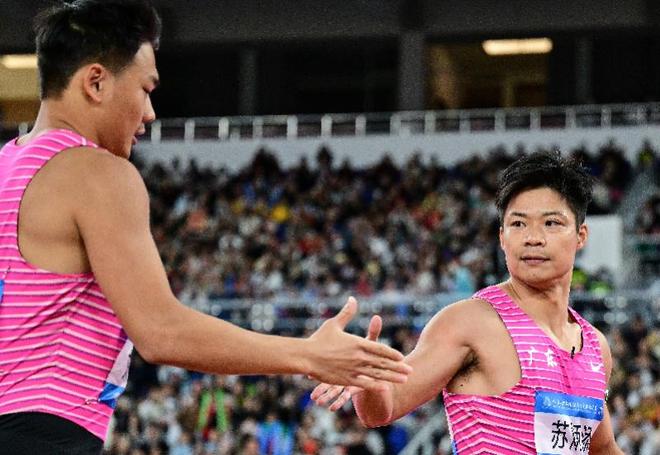11月20日,第十五届全国运动会进行了田径项目男子4×100米接力决赛,“亚洲飞人”苏炳添在全国观众的注视下亮相。 由苏炳添、刘洪熙、施君豪、陈冠锋组成的广东队最终跑出38秒71,收获第四名。