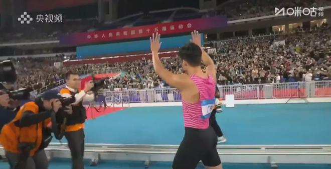 苏炳添表示:“能够坚持到今天,在我的家乡跟大家说一句再见,我感到非常荣幸。今天看整个体育场都是高朋满座的,谢谢你们的到来!”