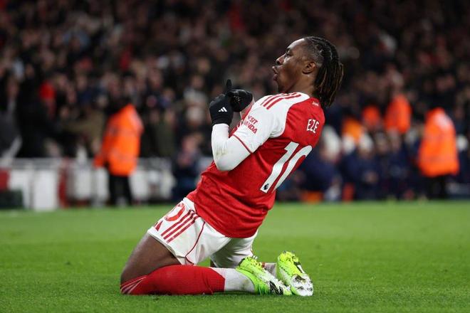 此役,枪手有多名主力缺阵,埃泽联手萨卡、特罗萨德和客串中锋的梅里诺组成了球队的攻击群。开场36分钟,特罗萨德为枪手首开纪录。5分钟后,埃泽潇洒抽射破门打开自己的进球账户。而在下半场,埃泽先是闪击得手扩大比分领先优势,又在对手扳回1球的情况下再度破门,上演了加盟枪手之后的第一个帽子戏法,最终率队4-1大获全胜。 此役,埃泽打满全场,6次射门4次射正打进3球,3次成功突破,以上数据都是全场最高。此外,他还有1次关键传球、2次抢断、2次拦截和1次争顶,9次地面对抗赢下7次。赛后,英格兰前锋得到了10分的满分,可谓是实至名归。