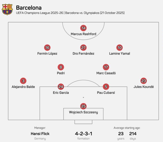 本场比赛,巴萨排出了俱乐部历史上第三年轻的首发阵容。该阵容平均年龄为23岁214天,仅次于2002年10月对布鲁日(22岁362天)以及2011年12月对鲍里索夫(23岁93天)的首发阵容。