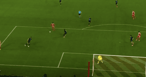 第30分钟,卡尔利用快速的频率连续摆脱防守,之后的射门擦着立柱偏出。
