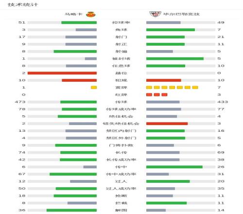 第5分钟,马略卡球员塞尔希-达德尔助攻韦达特-穆里奇打入一球。 第8分钟,毕尔巴鄂竞技球员古鲁泽塔助攻乌奈-戈麦斯打入一球。 第42分钟,马略卡球员韦达特-穆里奇将点球罚丢。 第42分钟,马略卡球员韦达特-穆里奇打入一球。 第45分钟,毕尔巴鄂竞技球员乌奈-戈麦斯助攻尼科-威廉斯打入一球。 第69分钟,马略卡球员韦达特-穆里奇罚入点球。 第70分钟,毕尔巴鄂竞技球队古鲁泽塔吃到第二张黄牌。 第71分钟,毕尔巴鄂竞技球队乌奈-戈麦斯吃到红牌。 第72分钟,毕尔巴鄂竞技球队莱奎吃到红牌。 球队阵容