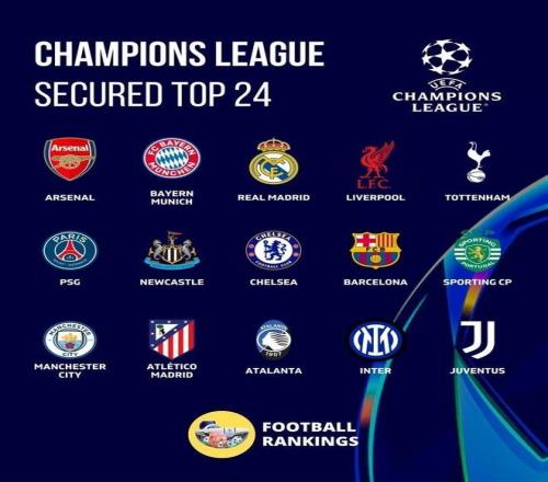 从目前的整体晋级形势来看,直接晋级区的格局呈现出“头部稳固、中后混战”的态势。阿森纳与拜仁慕尼黑表现强势,已成功锁定前8席位,提前斩获淘汰赛入场券,成为本轮赛事中率先上岸的两支豪门。 除了这两支提前锁定优势的球队外,皇马、利物浦、热刺、巴黎、纽卡、切尔西也暂时跻身直接晋级区,占据了当前直通16强的剩余席位。