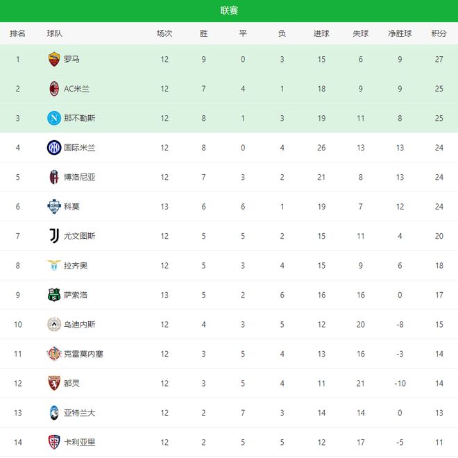 法布雷加斯12场不败!20绿巴萨,意甲最新积分榜:16名差3分