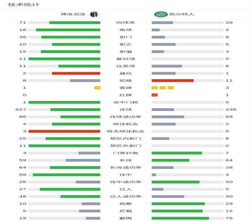 第5分钟,凯尔特人球员前田大然助攻旗手怜央打入一球。 第34分钟,凯尔特人球队旗手怜央吃到第二张黄牌。 第40分钟,凯尔特人球员恩格斯助攻特拉斯蒂打入一球。 第58分钟,博洛尼亚球员 延斯-厄德高助攻达林加打入一球。 第72分钟,博洛尼亚球员乔纳森-罗打入一球。 球队阵容 技术统计 |