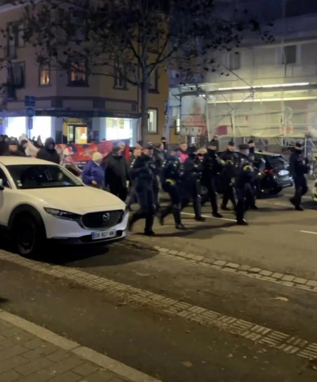 视频显示,在周四晚间球队与斯特拉斯堡的欧战对决前,一小部分暴徒式球迷挑起了骚乱。 视频中,这伙水晶宫球迷四处投掷咖啡馆座椅、挥拳相向,混乱局势愈演愈烈。 据报道,多扇窗户在冲突中被砸毁,鹅卵石地面上散落着大量玻璃碎片。 其他球迷震惊地目睹了斗殴全过程,并纷纷用手机记录下这一幕。 这群暴徒最终被强行驱散,广场上留下了多张翻倒的座椅和一片狼藉。 这场冲突发生在周四晚间,仅涉及少数水晶宫球迷,却破坏了其他守规矩球迷的观赛之夜。 当局派出防暴警察将这一小群暴徒护送前往体育场,在长达一小时的路程中,他们身后跟着一长列警车,两侧有手持防暴盾牌的宪兵护送。 这些球迷原本计划乘坐有轨电车前往赛场,但因滋事被处以步行处罚,全程在大批警力监视下前行。