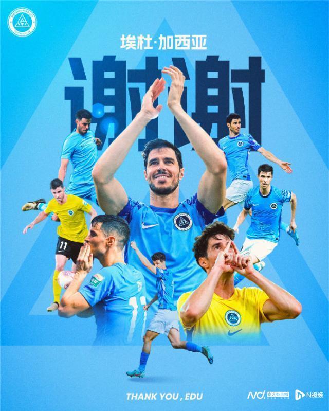 俱乐部海报致谢埃杜·加西亚。 球队公告显示,埃杜自2022年加盟球队以来,在中超、中甲等各项赛事累计代表球队出战94场,攻入32球并送出12次助攻,是目前队史进球纪录保持者。2024赛季,埃杜凭借优异表现入围中超年度最佳球员候选名单。