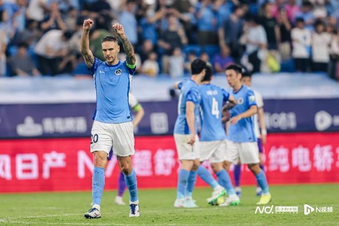 5月1日,深圳新鹏城主场1比0取胜天津津门虎,杜加利奇庆祝进球。IC图片 后防大将、队长杜加利奇是2024赛季来到深圳新鹏城的,他累计代表球队出场56次,攻入8球。 德·列昂索在2024赛季夏季转会窗加盟深圳新鹏城,在过去一年半时间上场37次,攻入3球并送出1次助攻。 深圳新鹏城阵中目前只剩下今年夏窗到来的“大腿”韦斯利及去年夏窗来到球队的中场卡尔采夫两名外援。这意味着在接下来的冬窗,球队至少会迎来3名新外援。 |