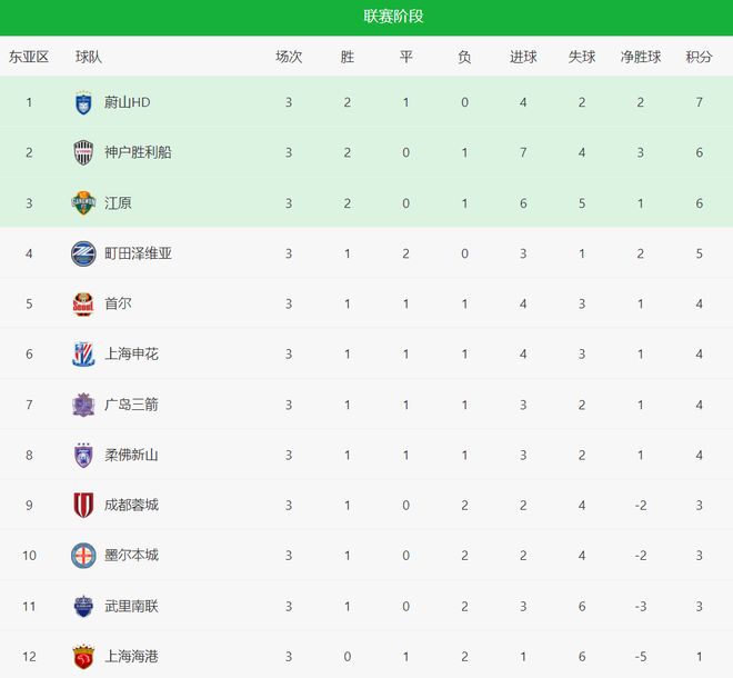 随着申花20首尔获首胜,亚冠最新积分榜:蓉城跌第9,海港排垫底