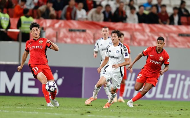 上半场,上海申花场面处于被动情况下,9次射门4次打正,还有4个角球机会,未能攻破首尔的球门,开场不久的一次反击,阿苏埃近距离推射被挡出了底线,错失绝佳良机。