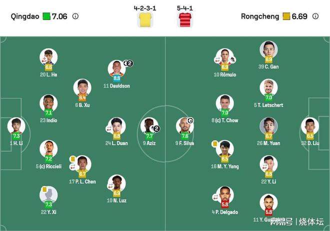 青岛西海岸 首发【4-5-1】 门将:1-李昊 后卫:5-里切利、22-杨希、20-何龙海【41分,13-宋浩宇】、23-马特乌斯 中场:6-徐彬、17-陈柏良【73分,8-张修维】、24-段刘愚【86分,14-冯刚】、10-内尔松卢斯【86分,68-方海洋】、11-戴维森 前锋:9-阿齐兹 替补:26-王晗懿、37-东航、77-戚秉宇、68-栾昊、30-刘小龙、39-刘柏杨、56-高迪、99-鄢奇航 成都蓉城 首发【5-4-1】 门将:32-刘殿座 后卫:5-莱切特、11-古尔芬克尔、22-李扬【46分,15-严鼎皓】、26-元敏诚、39-甘超 中场:4-德尔加多【46分,2-胡荷韬】、8-周定洋、10-罗慕洛【84分,18-韩鹏飞】、16-杨明洋 前锋:9-费利佩 替补:14-冉伟枫、3-唐鑫、17-王东升、19-董岩鋒、49-徐虹、25-木热合买提江、58-廖荣祥、24-唐创、48-李漠雨 |