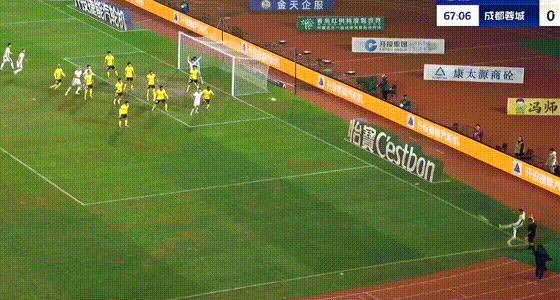 第67分钟,罗慕洛角球开到禁区,费利佩头球攻门顶进,成都蓉城扳回1球。