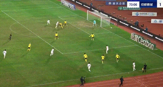 第74分钟,严鼎皓射门被挡出,成都蓉城错失良机。