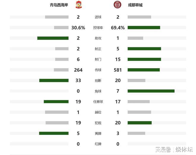 比赛焦点 1、此役成都蓉城未能拿到3分,目前还是落后上海海港1分,错失登上榜首的绝佳机会,获得争冠主动权几个小时又送出去了。 2、青岛西海岸主场被读秒绝平,总积分提升到37分,仍然排在第九名。